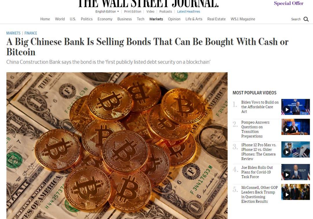 据华尔街日报报道,中国建设银行计划发售一只数字债券,筹资目标为30亿美元以内,个人和机构投资者都可以用美元或比特币买卖该债券。此次发行交易由建设银行马来西亚纳闽分行执行。这只数字债券将在交易所FusangExchange上市。该数字债券对境外投资者的起售金额为100美元,将每三个月展期一次,支付的年化利率为伦敦银行同业拆息加50个基点,按目前水平计算相当于大约0.75%。据南华早报称,该数字债券将基于区块链技术发行。