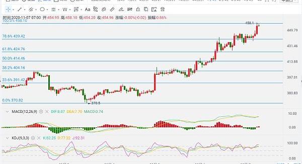 早间行情已经开始大涨,凌晨刚好触及皓哥给出的低点位置迎来强力反弹,大周期日线和四小时全部长阳,尤其是日线布林带上轨被击破,下一步币价直接向488冲刺,短期能不能到达还要看主力的动作,量能的持续配合。技术面来看,四小时K线连续拉升,回踩的机会并不多,均线全部多头排列,那么白盘还是低多比较稳健,附图指标MACD双线向上发散,KDJ金叉形成,可以452—454附近多,看到459—461附近。操作中还比较迷茫的朋友,不妨多看看老师的策略和视频教学,24小时实盘指导,更多行情,大家可以关注我实盘把握,专业跟单解套。