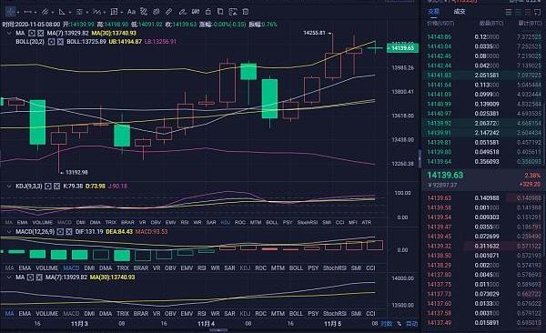 日内比特币多头再度雄起,价格凌晨是打破昨日13920-14000区域压制,行情顺势冲高再度刷新高,目前价格在14000区域运行,价格在尝试企稳冲高,日内有机会进一步上涨的趋势。