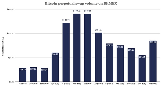 1月份,BitMEX平台上BTC永久掉期合约交易量上涨了55%,这是8个月以来的首次增长。
