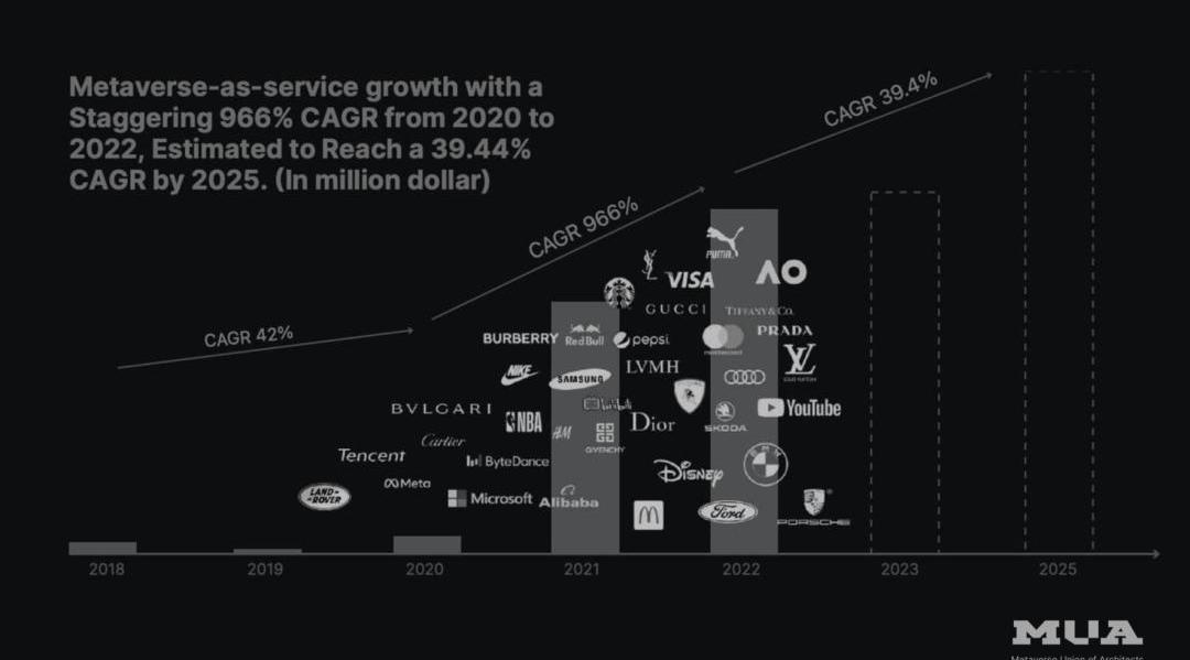 用户无需考虑是在线下,还是在链上进入元宇宙,统一的交互体验将抹除现存企业无法触达用户的隔膜。具体而言,MUADAO在2022年和多个元宇宙平台联合举办了竞赛活动,用以促进开发者的体验和用户的转化,甚至还在MIT展开竞赛与课程合作,提供完整的教学和开发者培训,从开发侧增强Z世代用户对元宇宙的认知升级。