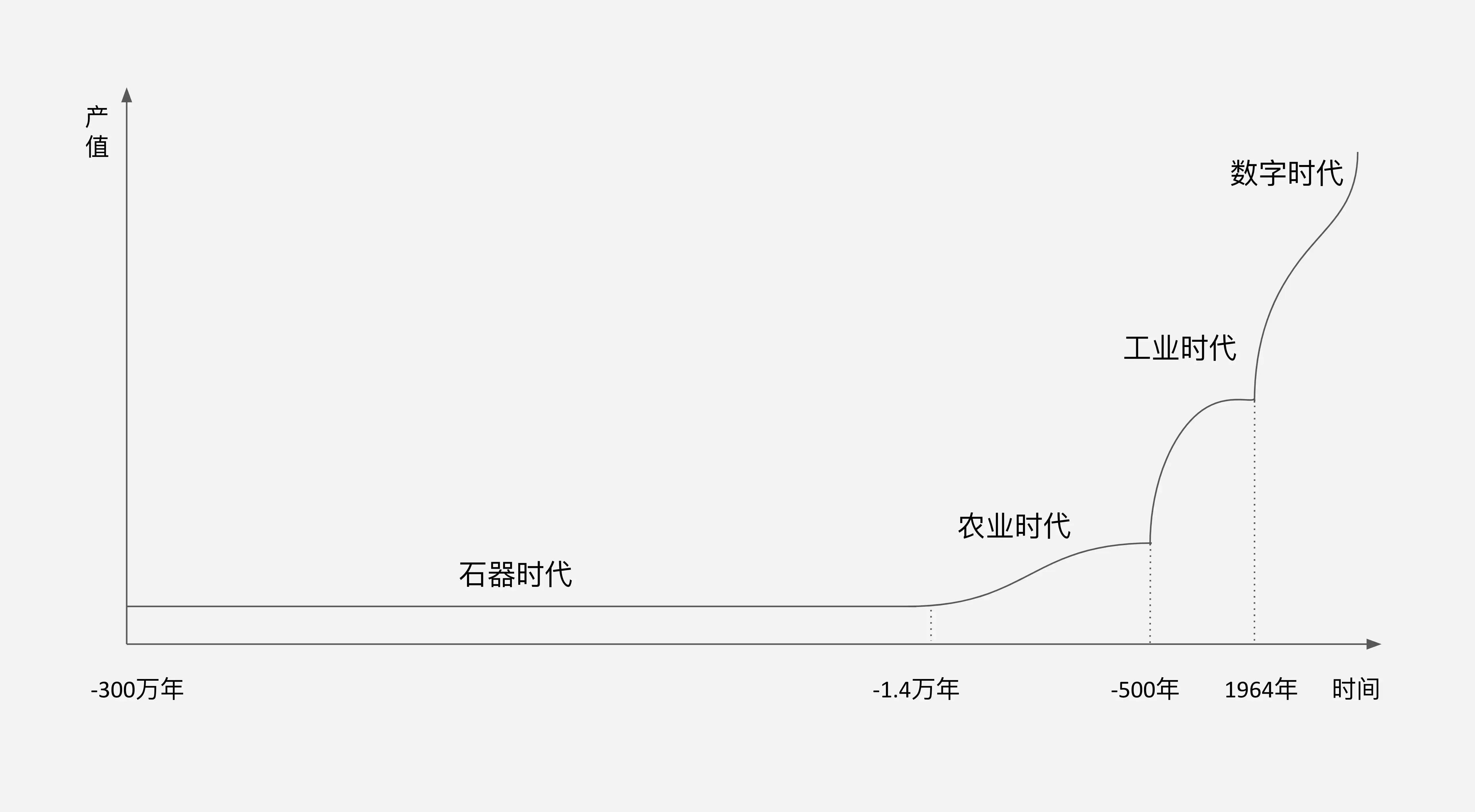 1.4万年的农业时代所产生的经济价值远高于300万年的石器时代所产生的价值,500年的工业时代所产生的经济价值远高于1.4万年的农业时代所产生的价值。截止目前60年的数字时代所产生的经济价值也已远远高于过去300年的工业时代所产生的价值。人类正处于技术大爆炸的极早期阶段,而全球范围内连续出现可编程工具正是这一技术大爆炸的核心特征。人类核心生产工具从石器转为锄头,再从锄头转为可编程工具总共花了300万年,耗时之长令人瞠目结舌。一切数字化进程的起点,都源于「计算机」的诞生。
