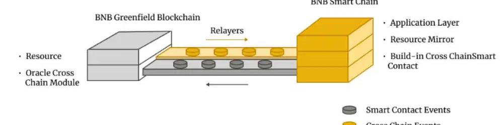 好了回到Greenfield,如开头所说它的生态是围绕用户的三位一体架构:BSC链、Greenfield和dapps。Binance有交易链,再来存储链,开发者基于这两个所开发出的dapp则自成体系,并且Greenfield是一条侧链,有一条和BSC原生的跨链桥,均使用BNB作为Token,这一套组合拳打出去Binance生态就完整了。