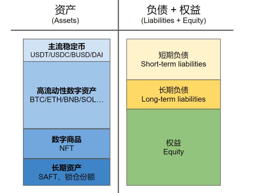 图2可能是某一个以纯数字化DAO组织的资产负债表的样貌。我们后续的探讨可以以此为一个出发点。