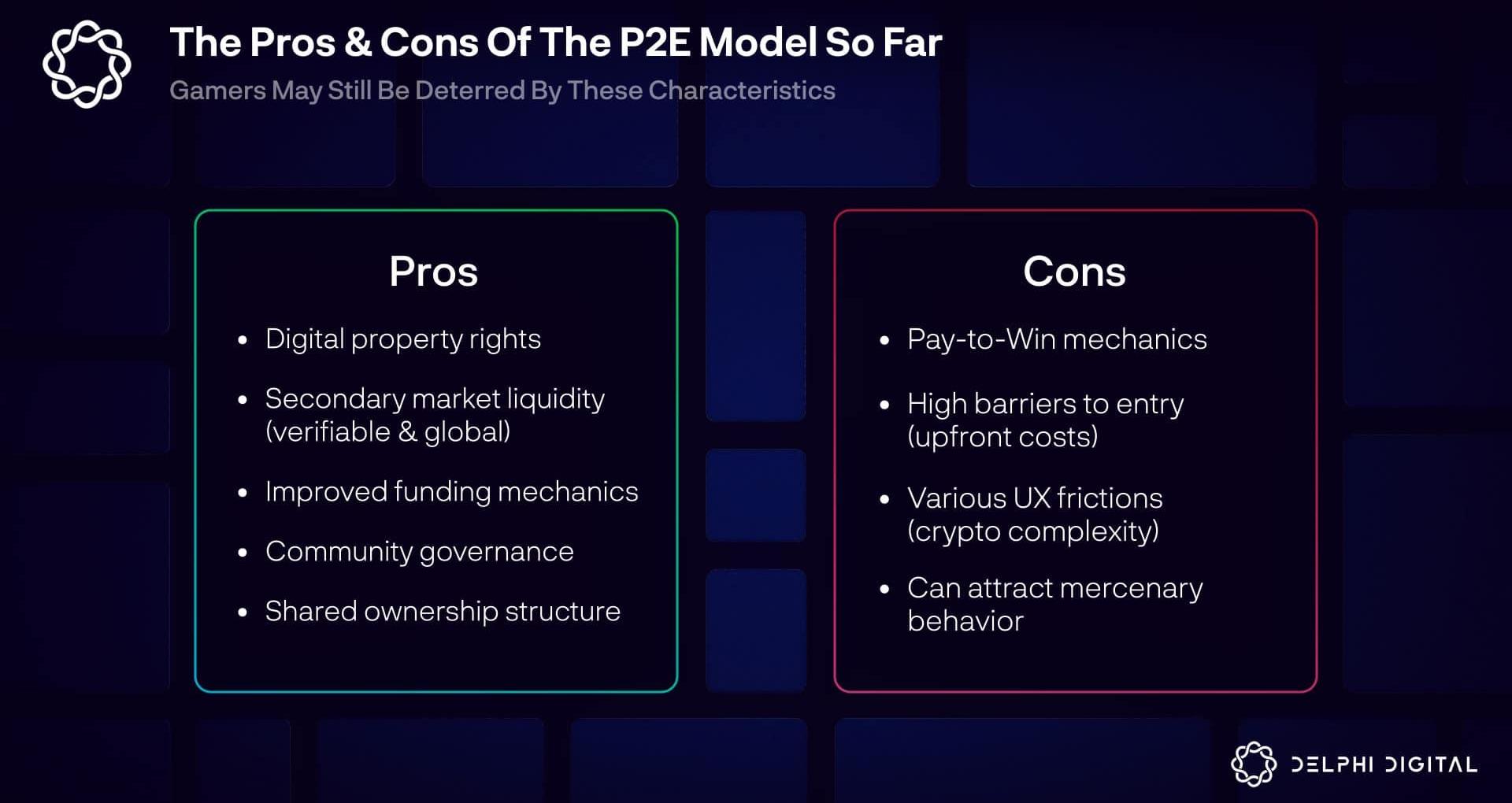 这些组件的有趣之处在于它们不一定与当前一代的P2E游戏和公会冲突。事实上,这些原始因素的存在反而可以用来增强这一代P2E游戏。例如,像Axie这样的游戏可以具有纯技能的免费迷你游戏模式,其中NFT作为真正的荣誉徽章被授予锦标赛冠军。这也将降低新玩家采用的摩擦。
