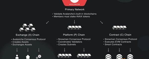 Avalanche以三链架构为特点,分别为交易链、合约链、平台链,下图给出了比较清晰的分工。