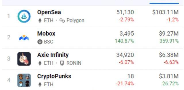 仅去年12月30日一天,MOBOX上的NFT交易额就增长了359%,达到926万美元,成功超越了AxieInfinity和BoredApes,荣登当天的交易量榜首。