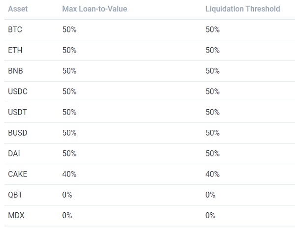 Qubit的LTV和清算线参数(数据未更新),来源:Qubit文档