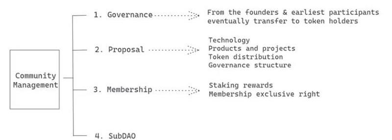 持有YGG代币的DAO成员享有治理权和游戏资产的权益和租赁等业务活动带来的收入。如果成员参与子DAO,则还需要参与DAO的构建,并获得子DAO?代币的特权利益。