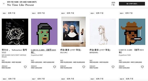9月17日-9月28日,佳士得拍卖行将晚上拍卖余文乐先生的精选珍藏,而余文乐先生的拍卖品里不仅有传统的实体收藏,其中还有PUNK的NFT作品。
