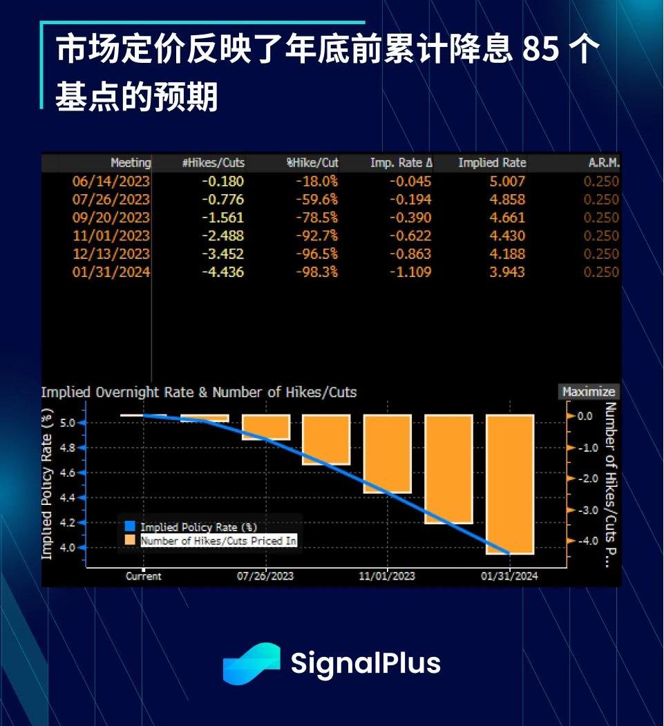 各位朋友,欢迎来到SignalPlus宏观点评。SignalPlus宏观点评每天为各位更新宏观市场信息,并分享我们对宏观趋势的观察和看法。欢迎追踪订阅,与我们一起关注最新的市场动态。长话短说,Powell主席在沟通方面再次展现了高超技巧,美联储如预期地加息25个基点(5.25%),伴随“鹰派暂停加息”的立场,移除了所有前瞻性指引。