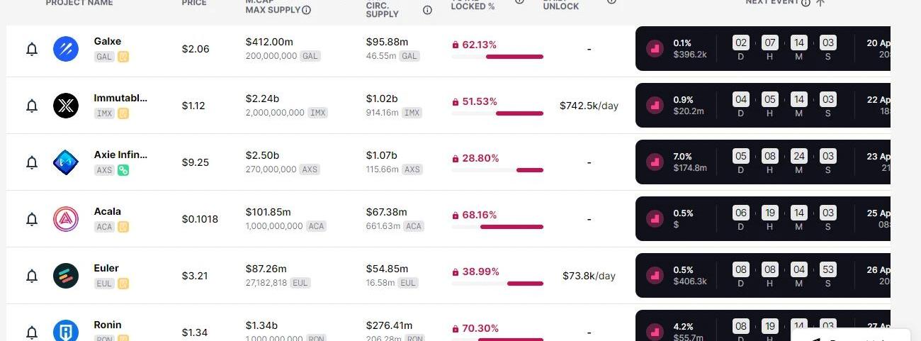 在寻找投资机会时,查看项目的代币解锁时间表可能很有用。TokenUnlocks提供了这样一个简单的工具,可以让你找到大多数项目的解锁时间表。