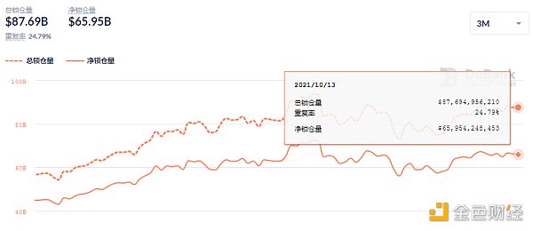 Ethereum链上DeFi锁定资产前十排名及锁仓量,数据来源:Debank