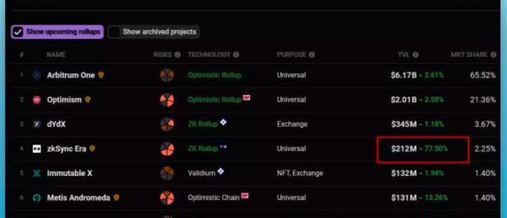 原文作者:TheDeFiInvestor原文编译:深潮TechFlow当下,zkSync生态系统正准备迎来爆发式增长,而现在正是加入的最佳时机。随着更多的去中心化应用程序基于zkSync生态系统展开,这个生态系统的潜力也将进一步扩大。在本文中,我们将介绍一些最具创新性和潜力巨大的项目,这些项目都基于zkSync技术,并利用零知识证明提高了效率,降低了成本。如果你想在加密货币领域寻找更多投资机会,那么这篇文章绝对值得你一读。在zkSync推出不到30天的时间内,其TVL已经达到了2亿美元。同时,zkSync还成为以太坊L2生态系统中活跃度第二高的平台,每日的交易量甚至比Optimism更。所有这些都是在没有激励计划,且部署了不到20个dApp的情况下发生的。可以看出,zkSync生态系统的潜力和吸引力非常巨大,未来有望吸引更多的开发者和用户加入进来,推动生态系统的进一步发展。