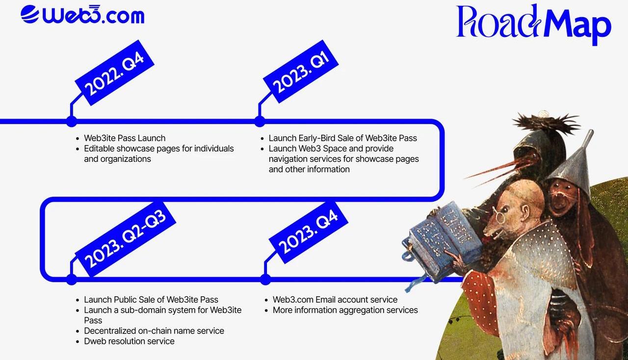 1.NFT赋能——给使用者域名的拥有和控制权Web3itePass是一张在以太坊主网上发行的ERC-721标准的NFT域名,NFT象征了对这一域名的所有权,可作为编辑展示名片的钥匙。2.流动性价值同时,NFT具有较好的流通能力,对于一些比较有价值的域名,用户也可以便捷地进行交易,获得品牌溢价红利。3.识别性高当前的智能合约地址通常是由冗长且无规则的字符组成,难以记忆、辨认。而web3.com是一个简单的域名,用户可以轻松记忆xxx.web3.com链接,使得访问十分便捷。4.安全性高链上与链下便捷联通,用户在链上看到.web3.com的域名后可以很便捷直接地访问链下展示页,从而可以很便捷的让链下认证信息和链上信息关联起来,并通过展示页中绑定的社媒平台、官方认证等信息确认合约地址的真实性。用户可以避免钓鱼合约,进而导致各种黑客攻击和意外操作。未来前景&路线图