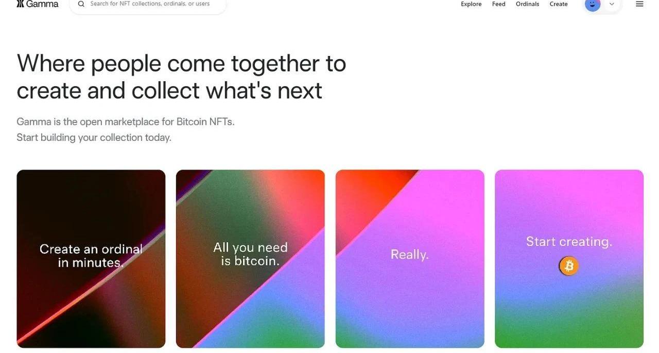 此时,当你把BTC收到Xverse钱包后,就可以开始铸币了。为此,前面提到的gamma.io网站是目前最直接的Ordinals式铸造资源之一,所以我向比特币NFT的初学者推荐它。