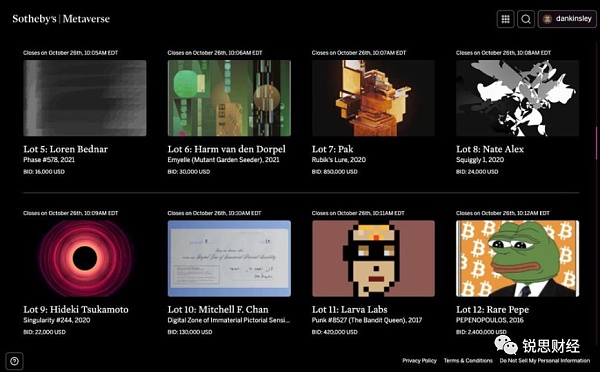 10月18日,苏富比推出了名为“苏富比的元宇宙”(Sotheby’s Metaverse)的精选 NFT 平台,用户可以在该平台上使用 ETH、BTC、USDC 或法币购买 NFT。