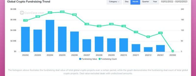 在DeFi领域的新鲜事有哪些?每个月我都会跟踪资金流向来寻找答案。在熊市中获得资金的早期项目有很大机会在牛市中茁壮成长。以下是筹资的现状和刚刚筹资的5大项目:首先,筹款的下降趋势终于得到了扭转。1月份有105笔加密货币筹款交易,价值12.7亿美元——高于2022年12月的83笔。如果交易量及其美元价值继续增加,这是一个很好的看涨信号。