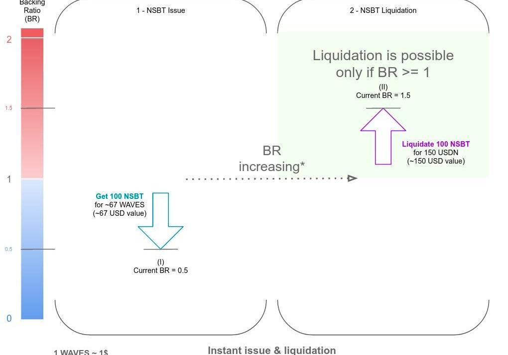NeutrinoProtocol的机制和Terra有相似之处,它建立在Waves区块链上,价格已经长期略低于1美元,比较有可能面临监管。用户可以将1美元的WAVES代币锁定在智能合约中,铸造1USDN,也可以将1USDN赎回为1美元的WAVES。随着时间的推移,锁定在智能合约中的WAVES的价值可能和发行的USDN不再相等,这时就需要通过拍卖来调整储备金的价值,可能会增发原生代币NSBT。