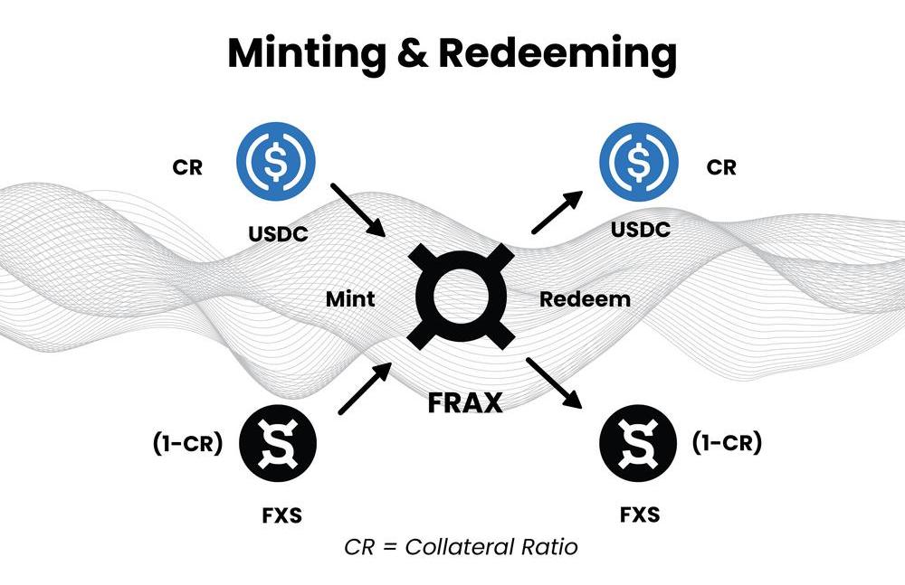 虽然当前Frax的抵押率高达92.5%,在Curve上也有大量流动性,发生死亡螺旋的可能性很低,但Frax也可能符合法案禁令的定义。Frax是一种部分算法稳定币,铸造1FRAX需要消耗总计1美元的USDC和FXS,其中USDC作为抵押品,FXS则代表算法部分。若FRAX的需求很高,则算法部分的权重升高,USDC的权重降低;反之则降低算法部分的权重,提高USDC的权重。