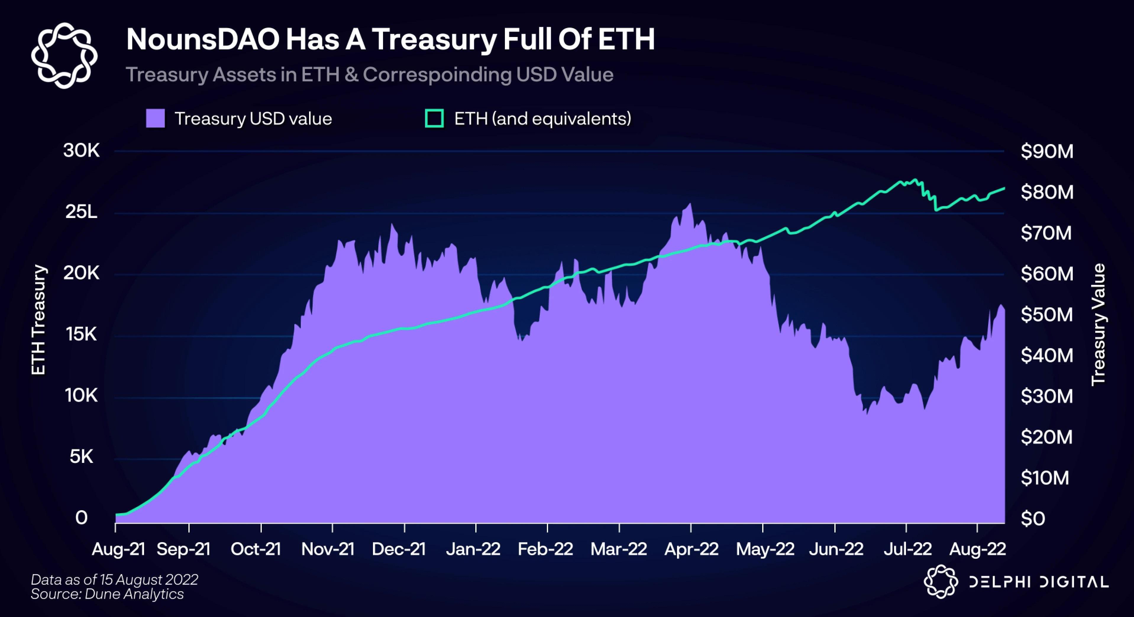 这为财库提供了资金,目前财库拥有27,100E,以今天的价格计算,相当于5200万美元。由于财库完全是以ETH和质押ETH持有,所以当ETH价格下跌时,它会受到显著影响。财库的历史峰值是在今年4月,当时财库价值接近8000万美元。这可以算是一个惨痛的教训。财务管理和多样化是需要考虑的基本领域。这一点尤其重要,因为许多赠款涉及以美元计算的支出。B.NFT驱动的治理