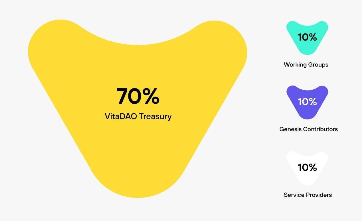 VitaDAO生态系统VitaDAO以人类历史上最长寿人的寿命秒数做单位,发行了同等数量的代币。并承诺,若人的寿命极限可超越此记录,他们就以新记录为基准增发代币。代币VITA可以通过向VitaDAO贡献工作、资金或其他资源来获得。VITA的所有权允许持有者参与VitaDAO的民主治理,指导其研究,访问其数据存储库并从中获利,并管理其IP组合。VITA不授予知识产权所有权而是授予完全治理权,VITA的设计遵循可持续性循环原则,即随着研发项目获得资金并开始产生数据,VitaDAO的IP价值随着积极的研究成果而增长。成功的商业化需要VitaDAO生态系统的发展和更大的资金可用性。这反过来又吸引了更高质量的IP,从而为更多项目提供资金并进一步发展VitaDAO生态系统。