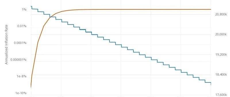 让我们从供给的角度出发,因为这会比较容易理解。现在,我们要搞清楚一个重要问题:单方面基于供给的视角,是否要对代币价值持保持或上涨预期?还是代币价值会出现通货膨胀?在供给侧的角度,如果存在的代币数量较少,代币的价值就会增加——我们称之为通缩。如果存在的代币变得越来越多,它们的价值将会下降——我们称之为通胀。当你从供给侧的角度去评估项目时,不需要思考代币是否有实际效用,或者给持有者产生多少收益。只聚焦在一点,代币的供应量以及它将随着时间如何变化。有几个问题,我们要弄明白:目前存在的代币数量为多少?有多少代币将会在未来产生?新代币的释放(增加)速度有多快?比特币在生产的过程中,遵循了一条简单明了的供给曲线,它们将会在大约140年中被释放出来。