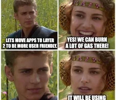 当在NFT和GameFi浪潮中为数不多的赢家成功吸引了粘性用户时,他们意识到他们可以自己积累更多的价值,而不是浪费在ETHGas费上。Gas费消耗现象在BoredApeYachtClub虚拟世界土地销售中有着明显的体现,该土地销售额为2.85亿美元,而Gas费却高达1.76亿美元。这对ETH持有者来说是好事,但对于Yuga社区来说是残忍的。这次销售对于YugaLabs和其他热门NFT社区来说是一个需要吸取的教训。