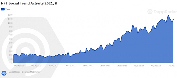 另一方面,围绕 NFT 的炒作帮助太空达到平流层水平。仅在 2021 年第三季度的三个月内,NFT 空间就产生了超过 106.7 亿美元的交易量。从长远来看,这比 2019 年、2020 年和 2021 年剩余时间的总和还要多。