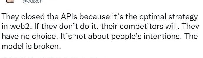 其他国家,如乌克兰,在跨境汇款公司最初限制向乌克兰汇款时,有效地利用了公共区块链的抗审查特性来资助他们的防御。像苹果、脸书和谷歌这样的科技巨头已经有了巨大的权力和影响力,不管是否愿意,他们被卷入了关于所在平台上的互动的公开辩论。推特经常被政府用来与选民直接沟通,并提供了一个很好的例子来说明去中心化的好处——2018年,推特取消了对独立开发者用来在推特上建立应用程序的各种API的访问。一个去中心化的系统将对像Twitter这样的决定具有抗审查能力。事实上,透明的、无偏见的参与规则本身就是一种抗审查,基于区块链的应用自然而然地继承了这种味道,因为默认情况下,部署在公共区块链上的代码是开源的。即使Twitter的前首席执行官JackDorsey承诺开放协议和长期中立性,在足够长的时间范围内,抗审查的Twitter的承诺总是会落空的——这是自然的博弈论结论。开放代码和允许用户拥有私人数据的概念,与建立在封闭协议上的公司的商业模式是根本对立的,这些公司依靠其终端用户的数据来为其股东创造经济回报。