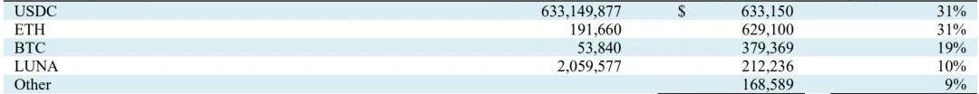 截止一季度,Voyager在加密货币方面的应收资产如下: