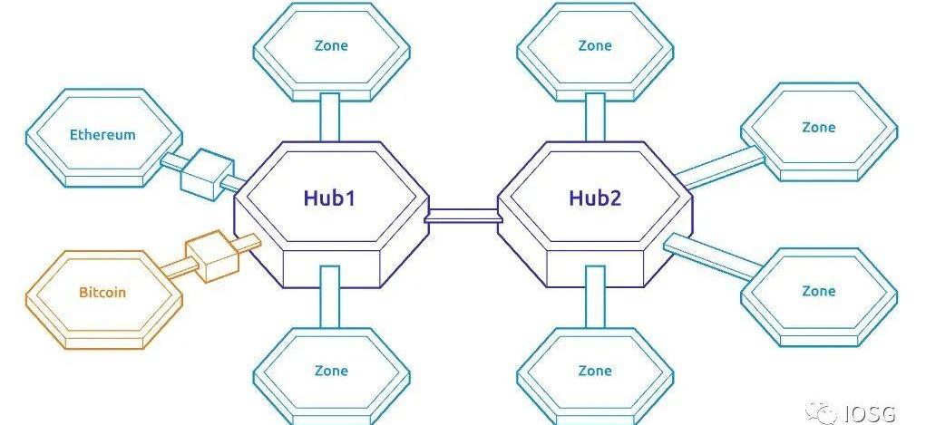 图片来源:https://v1.cosmos.network/introCosmos包含两种类型的区块链:Zones和Hubs。Zones是常规的异构链,Hubs则用于把这些Zones连接起来。Zone和Hubs之间的通信和消息传递依赖于IBC协议。当任意Zone与一个Hub建立IBC连接时,它可以与连接到该Hub的其他Zones进行通信。CosmosHub是整个网络中的第一个Hub,标志着Cosmos网络的启动。3、通信机制