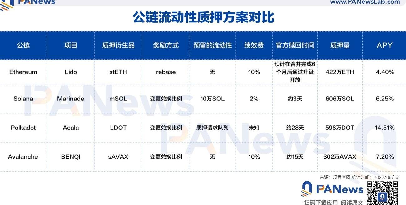 当八音盒的音乐骤停,木马停止了转动,当流动性的节奏不能连续,金融市场则进入恐慌。近期,无论是Celisus引发的stETH流动性危机,还是交易所AEX因为资金期限错配,短期流动性资金不足而暂停用户提币,都是市场流动性不足所带来的负面影响。在加密市场,流动性质押项目的本意是在帮助用户获得PoS收益的同时,能够释放质押资产的流动性。但是在bLUNA和stETH近期的极端行情中,流动性质押项目提供的流动性并没能让用户及时退出,还造成了市场踩踏和恐慌。当Terra的这一套机制崩溃时,bLUNA/LUNA的兑换比例约为0.7。bLUNA是通过LidoFinance质押LUNA后获得的衍生品,退出需要21天的等待期,也可以通过Astroport或Terraswap兑换为LUNA。如果bLUNA在二级市场上的流动性足够好或者质押平台提供额外的退出通道,那么持有者bLUNA的用户完全可以及时换成LUNA并出售,降低自己的损失。以上只是一种极端情况,而现在stETH并没有额外的风险,仅仅是流动性不足,也导致了部分用户的恐慌,使stETH出现了5%以上的负溢价。流动性质押的退出条件、项目方的质押比例、流动性分布等条件都影响着用户在退出时的体验,具体到每条公链、每个项目,又不一样。下文中,PANews将介绍主要公链上的流动性质押项目的相关情况,当你在选择项目质押时一定要了解这些流动性的方案和潜在的风险。