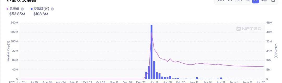 NFT市场经历了短暂爆发后逐渐步入「冷静期」。根据NFTGO6月24日的数据,NFT市场总市值已由今年2月366亿美元的高点跌至226亿美元,跌幅超过38%。NFT单日交易额由33.94亿美元的高点跌至1.5亿美元左右,下降了95.5%。市场整体下行的环境下,NFT市场中与娱乐明星关联的特殊类NFT也并未展现出足够的韧性。华语歌坛天王周杰伦相关联的PhantaBearNFT系列,地板价已由高点下跌了96.6%,且流动性相对匮乏,单日交易额仅为2万多美元。明星带货NFT遇冷并非孤例。此前,足球巨星莱昂内尔?梅西以及流行偶像麦当娜都曾发行过围绕自身形象设计的NFT,但由于这些NFT发行数量较少,售价较为高昂,让普通收藏者和粉丝望而却步,并未形成社区效应;而娱乐明星陈冠希、余文乐等虽发行了较多数量的NFT,但或因创作设计不被认同、或缺乏持续赋能,这些NFT也都在短暂炒作后跌破发行价。当前,已有越来越多的娱乐明星、名人参与NFT的制作与发行,NFT的形式也从图片拓宽到音乐、视频等,但这类NFT的热度往往难以持续,多数NFT在发售后都成了「一锤子买卖」。在业内人士看来,受众认知门槛和交易门槛较高是明星带货NFT效果不佳的一大原因,参与明星NFT的更多是「黄牛」和NFT投资者,大部分不是明星的粉丝,没有长期持有的动力;此外,明星NFT在后续运营期间也往往欠缺赋能,导致NFT的价值日渐流失。有用户认为,明星NFT在运营上可以设计一些与明星本人联动的玩法,有助于形成「长尾效应」。「杰伦熊」地板价暴跌96.6%