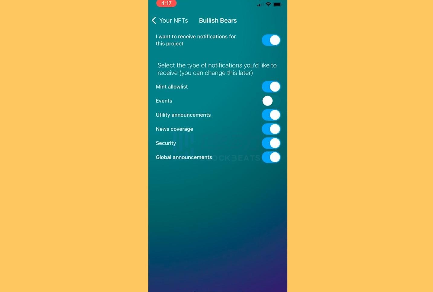 Pearl是一款Web3.0社区通讯管理软件,旨在帮助个体用户和社区管理员打造个性化的消息通知系统。Discord、Telegram这些Web3.0常用的通讯软件的一大痛点,就是消息提醒过载,很多用户难以从海量的信息中筛选出对自己重要的消息,导致社区参与度和保留度降低。Pearl分别在接收端和发送端对信息进行自定义归类管理,极大程度上解决了消息过载的问题。该平台主要包含三个核心部分,一个移动端信息接收应用,以便用户精准控制通知类型;信息发送Dashboard,社区管理者在验证链上身份后便可在这里设置并发送消息通知;团队打造的去中心化的钱包间通讯协议YAMP,以确保信息传输的安全性和可验性。首先是移动端App,在绑定钱包后,我们就可以看到自己所在的NFT社区。点击任意NFT社区进入消息管理页面,在这里用户可以选择希望接收的消息类型。针对每一个NFT项目,用户都可以进行单独的个性化接收设置。