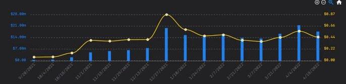 在第一季度,以太坊有许多令人兴奋的发展,其中最重要的可能是稳定币的持续上升。如上所述,稳定币在以太坊上的流通供应量按年增长超过188%,达到1220亿美元以上。特别是,像FRAX和UST这样的算法稳定币,相对于它们的竞争对手,有超乎寻常的增长。这种增长表明,尽管市场疲软,资本可能没有大量逃离以太坊经济。