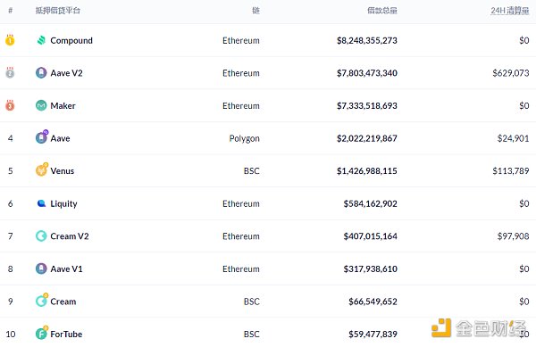 DeFi项目锁定资产前十排名及锁仓量,数据来源:Debank