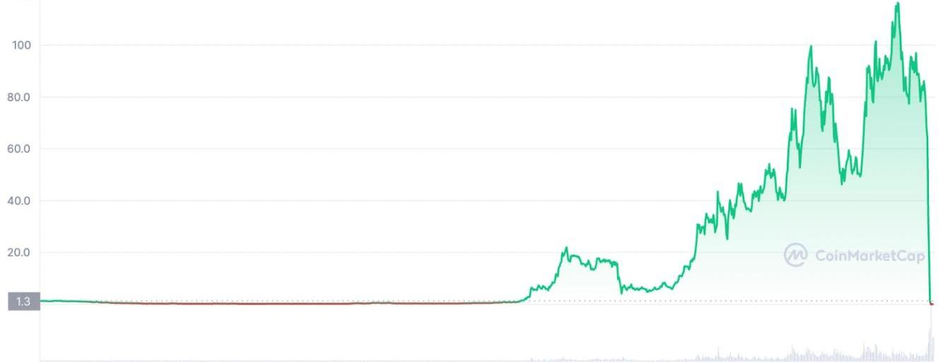 来源:CoinMarketCap。Terra自2020年以来的价格。Terra帝国建立