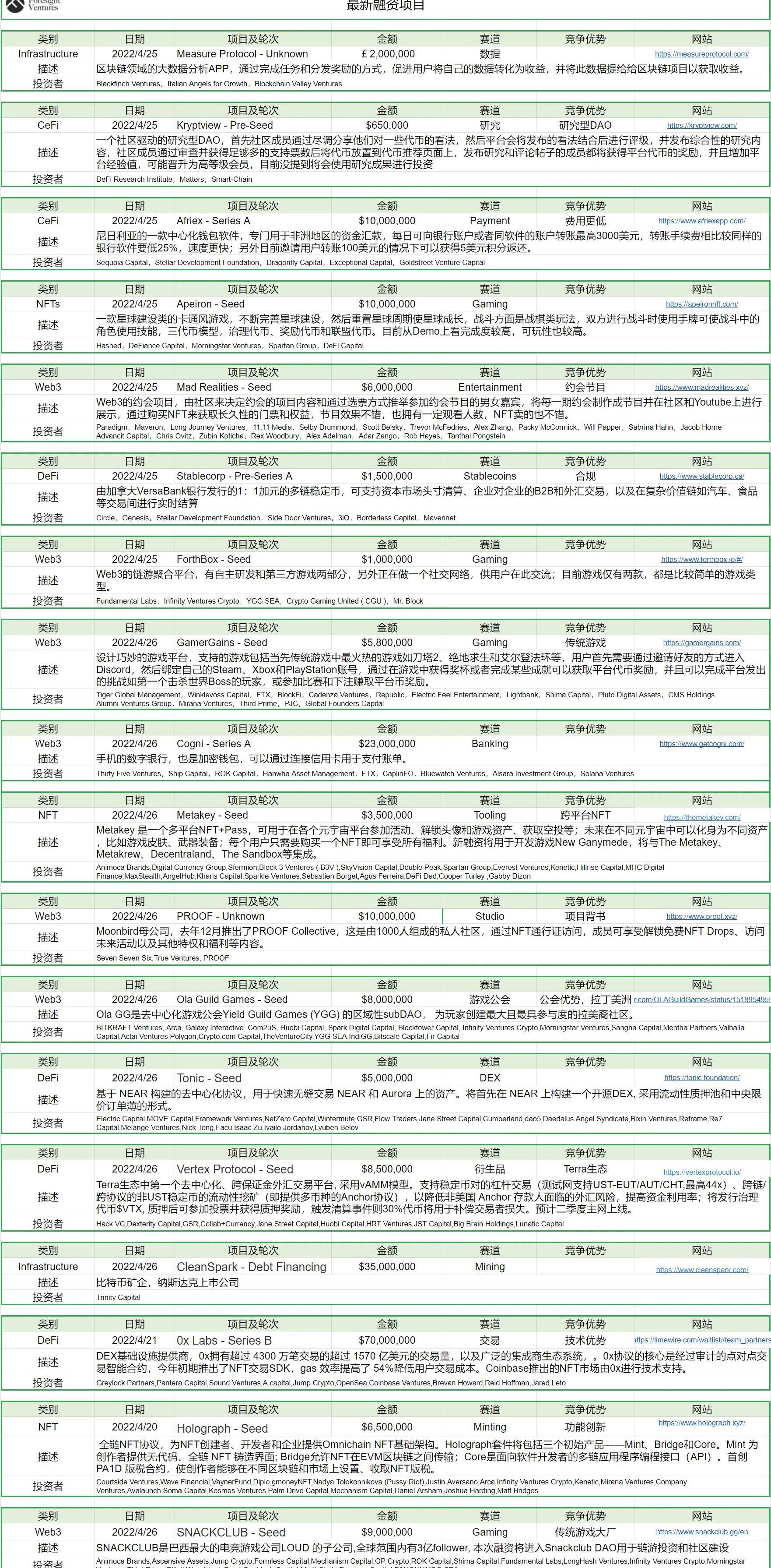 BTC下跌5%,市场跟随下跌。场外新增资金缺乏,场内存量资金博弈,表现较好的为中等市值的新币。NFT、链游等板块强者恒强。APE即将推出元宇宙,并开始售卖土地,将以APE而非ETH作为交易货币超预期。GMT本周修改规则,再次加大对GMT的消耗,对GMT具有一定的价格支撑,并新上了Coinbase。整体下跌市场里,公链币难有机会,ZIL、NEAR、WAVES等跟随市场大幅下跌。