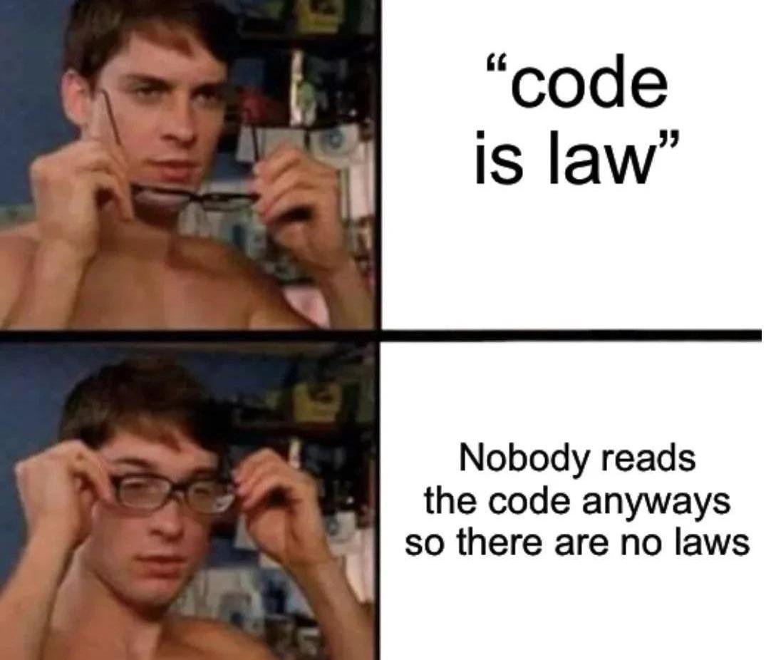 中心化等于低价,去中心化等于价值.你所付的高额gas就代表去中心化的价值加成.区块链有很多角度和层面的去中心化:算力去中心化、治理去中心化、代币去中心化、应用去中心化、存储去中心化......作为一个区块链或者Crypto项目,项目普遍的做法是先以中心化的姿态建立,然后再在路线图的执行中慢慢将各个方面给去中心化.但是尽管未来描绘的非常好,但是要是说哪个项目是彻底去中心化的,那还倒是真的没有,但彻底去中心化也不是最好的状态.没有人真的关心去中心化,因此如果真的要建立一个真正算得上去中心化的协议,就必须在一开始就定下去中心化的誓言,不然只会在之后漫长的过程中不断妥协,直到失去正确的方向.我们会从比特币的开发去中心化来开始探讨Crypto的去中心化愿景和某些领域的去中心化的必要性.1.Code是谁的Law?