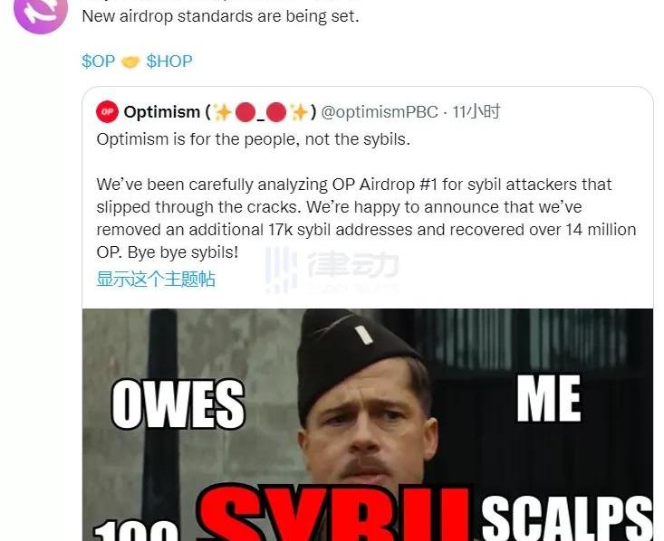 欧科云链链上大师统计Optimism官方4/28和5/24公布的空投信息Hop显然很开心,他们还认为空投似乎进入了一个全新的时代。