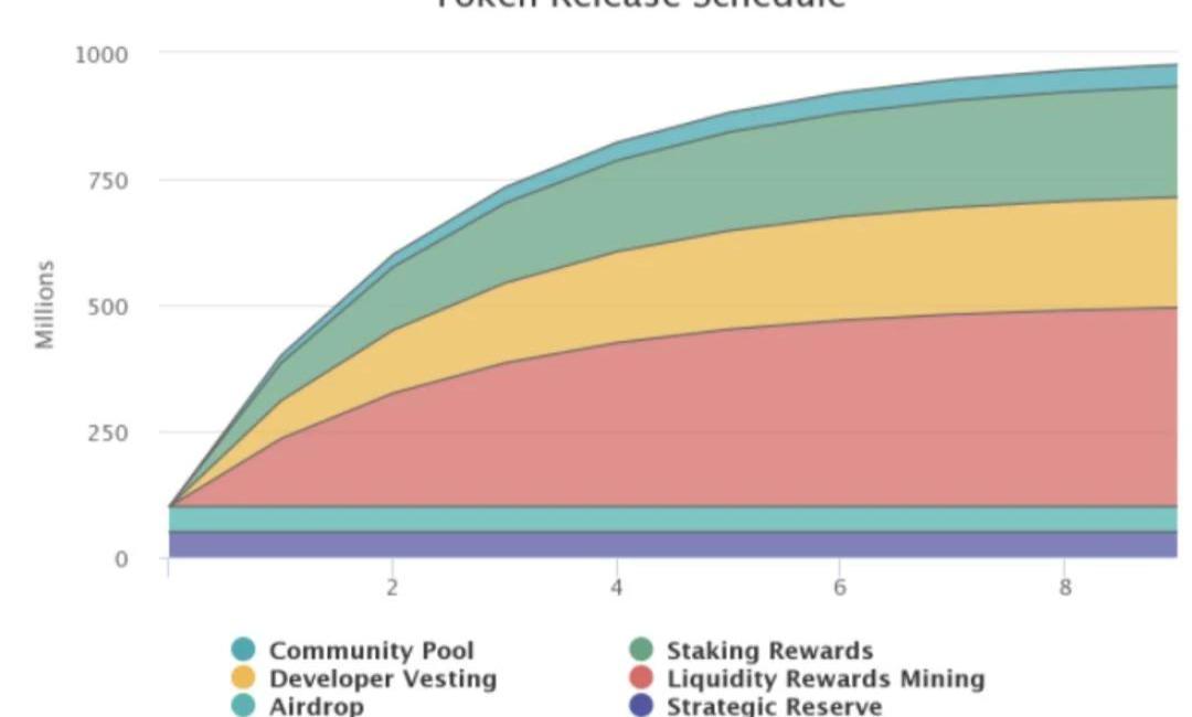 OSMO的创世数量是1亿,其中50%采用QuadraticFairdrop空投,另外50%作为战略储备。