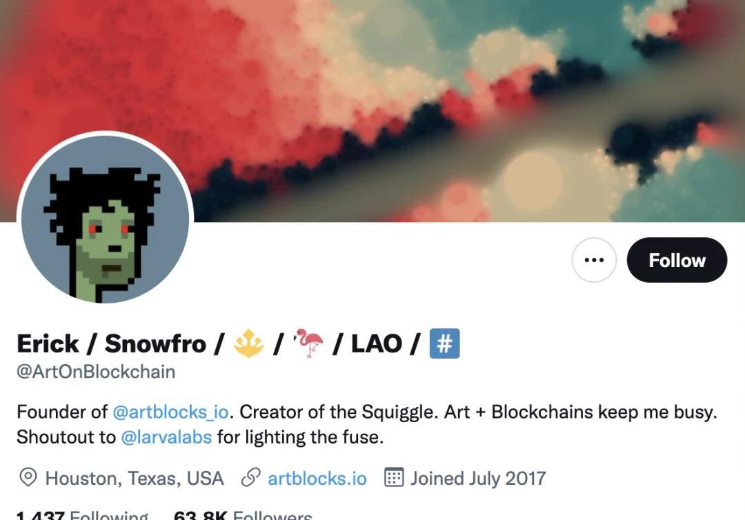 尽管SuperRare这样的交易平台在一定程度上提高了生成艺术家的市场影响力,它们并没有让生成艺术本身与区块链紧密结合起来,在疫情下出现的ArtBlocks改变了这一点。ArtBlocks的CEOErickCalderon在2016年就开始投资比特币和以太坊。在2017年,他成为了CryptoPunksNFT的收藏者。这些24x24像素的NFT直接通过算法生成,没有事先制作的图层,跟目前主流的NFT头像项目在创作方式上非常不同——这正是Erick花35美元的gasfee铸造它们的原因。