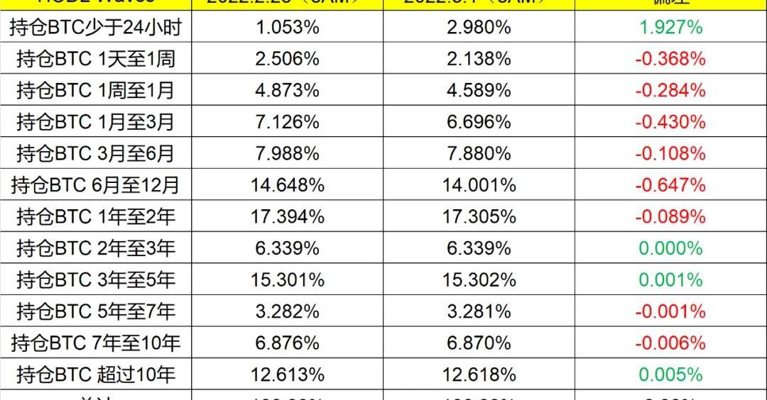 从以上的两个观点来看,都有可能是BTC上行的推手,那么到底是那一方的“势力”才是昨天大涨的真正的买单者,我们还是要从数据着手。首先,我们最直观的看到的还是BTC从2月28日早晨八点到3月1日早晨八点这24小时的信息,在数据中可以看到,相对来说散户的变化是最低的,当然是有可能大量散户的筹码集中在交易所没有提现,但是如果作为“避险”财产,面对美国的交易所制裁,存放在交易所的相对可能性要低一些,即便是本土交易所也一样。