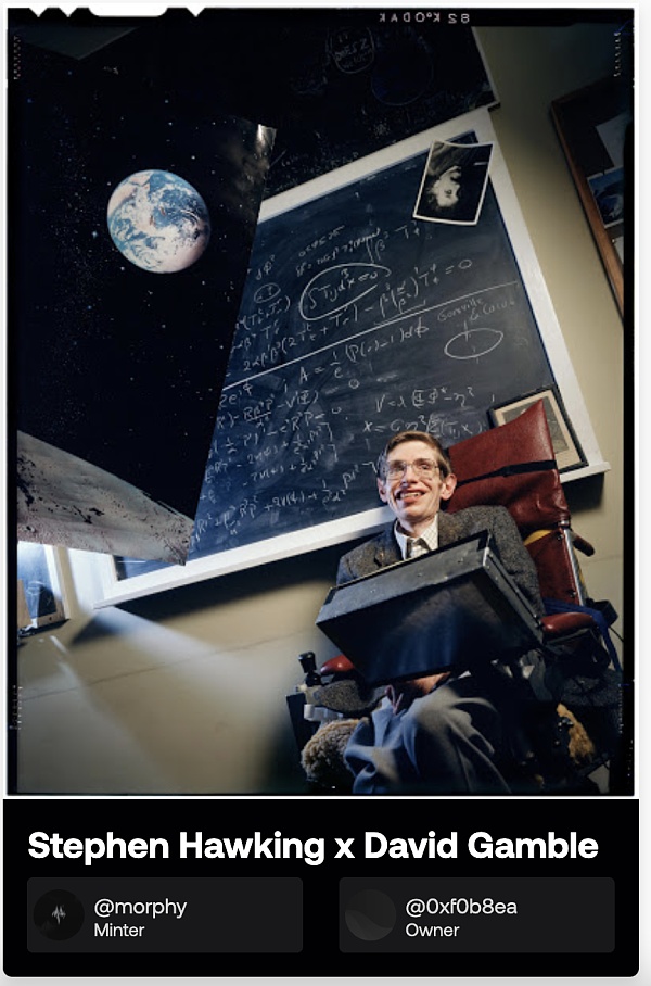 本次进军 NFT 行业,第一个推出的就是著名的斯蒂芬霍金照片。