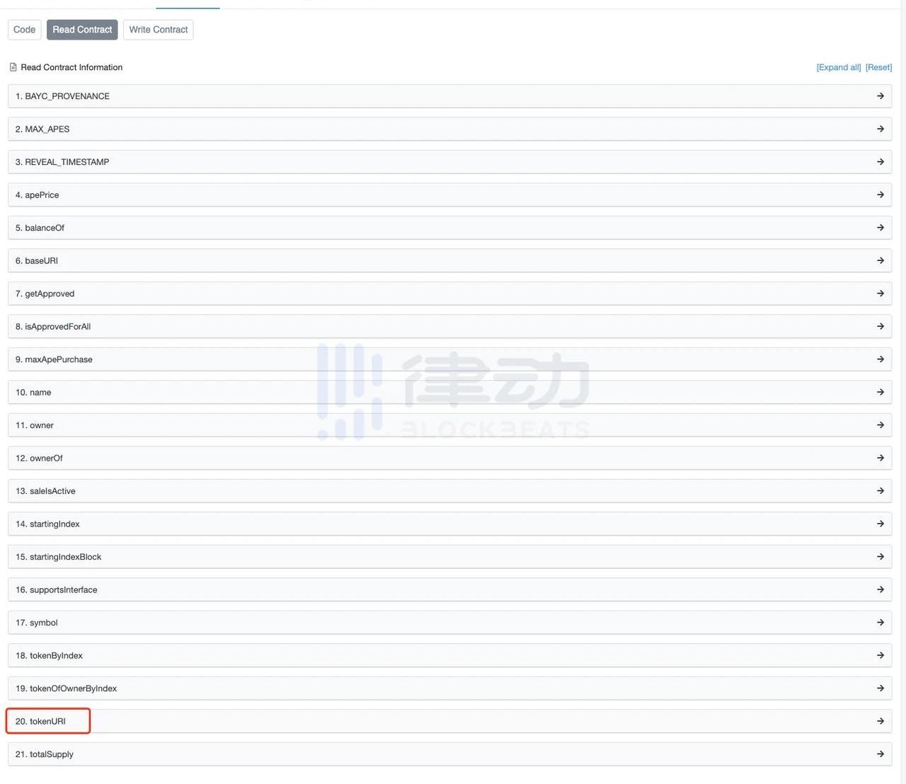我们依然通过上文提到的方法,通过Etherscan调出其元数据,返回的结果如下图