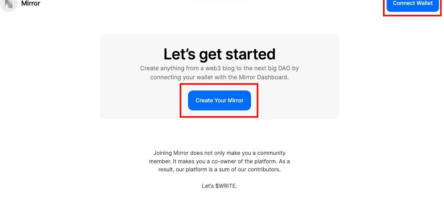 简介:「Mirror」成为在这场Web3.0革新运动中最受欢迎的去中心化内容创作平台,且不说大家或许是为了获得更多的空投,但「Mirror」的出现确实也是Web3.0中具有代表性的平台。前由AndreessenHorowitz加密合伙人DenisNazarov创立,类似于Medium,通过为创作者提供代币发行工具来帮助创作者众筹,代币:WRITE。融资:2021年6月宣布完成超1000万美元种子轮融资,风险投资机构UnionSquareVentures、AndreessenHorowitz等参投。空投规则:根据「WRITERace竞赛参与度」、「文章发布频率」、「众筹」和「拍卖创建」以及项目支持四个因素,之后可能会随着改进算法继续进行空投活动。读写体验:5颗星接下来我们体验一下「Mirror」的「导入文章」和「NFT」功能。首先我们需要链接钱包和创建: