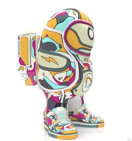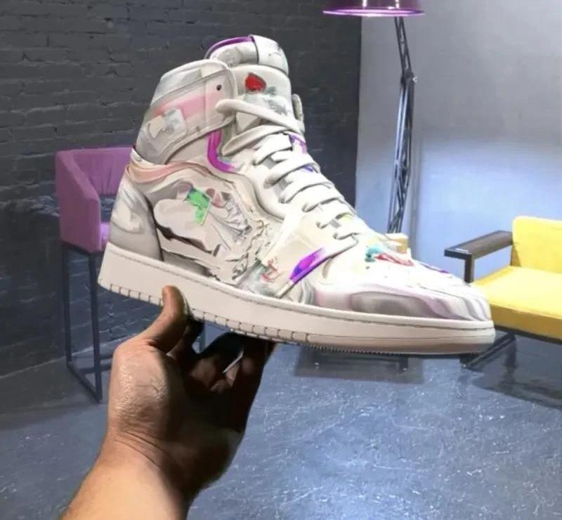 ElonMusk脚上被合成的「CyberSneaker」「Cybersneaker」的拍卖让RTFKT走进了大众的视野,随后TheXEvolutions的出现,让RTFKT真正踏上了NFT球鞋的道路。同年11月份,RTFKT以AirJordan1OG为灵感制作了一双名为TheXEvolutions的NFT球鞋,并在由团队搭建的拍卖平台展开为期10天的拍卖。纯白色的球鞋在每次拍卖达到一定价格时会增加一抹油彩,设计也会随之变化。最终这双球鞋再进化六次之后,以22个ETH被著名NFT藏家Whaleshark收入囊中。Whaleshark也在拍卖结束之后收到了来自RTFKT制作的实体球鞋。