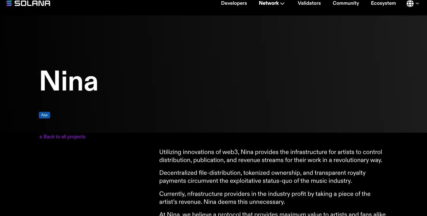 推荐指数:2颗星十、音乐NFT项目Nina协议