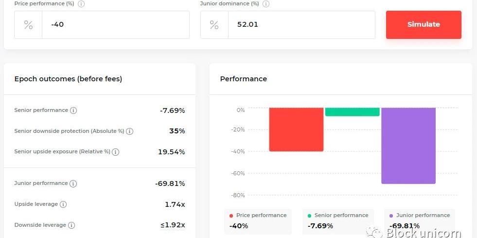 情景#6:低价格表现强劲,初级优势<50%从示例中可以看出,SMARTAlpha为投资者提供了一种对资产进行杠杆敞口的方式。这带来了与另一款流行产品perpetuals(perps)的相似之处,但SMARTAlpha有四个主要区别:1.SMARTAlpha是只做多的产品:投资者无法对资产进行空头头寸,因此即使是那些持有优先股的人也必须对标的资产有一定程度的信心。2.初级投资者不能被清算:在超过全部下行覆盖范围后,老年人承担的下行百分比增加。初级池中的人开始看到渐进结果,每增加一个百分比损失对他们的影响越来越小。BarnBridge的仪表板可能会在界面上显示5倍的上行杠杆和5.5倍的下行杠杆,但真正的风险/回报权衡更具吸引力。3.SMARTAlpha是可组合的:如前所述,初级和高级会收到代表他们在产品中的资本的代币,该代币可用于其他DeFi平台。投资者可以分配或质押这些可组合的代币以增加他们的投资回报,如果发现有吸引力的机会,则使产品可能更具资本效率。4.杠杆可能有限:平台上的杠杆基于初级支配地位,初级支配地位不太可能不成比例地增长到使用perps可获得的20倍或更多杠杆以获得10倍的上行杠杆)。有些人可能将其称为功能;其他人可能会称之为错误。该协议是将资产部分引入DeFi的独特方式,但对产品感兴趣的人应该了解潜在的风险。分档价格敞口的引入是新的,尚未进行大规模测试。如果池参数管理不善和资产定价错误导致不可预见的事件,这将成为投资者面临的最大风险之一。如果SMARTAlpha获得关注,这些风险将会消退,但早期采用者应该承认它们。结论和要点